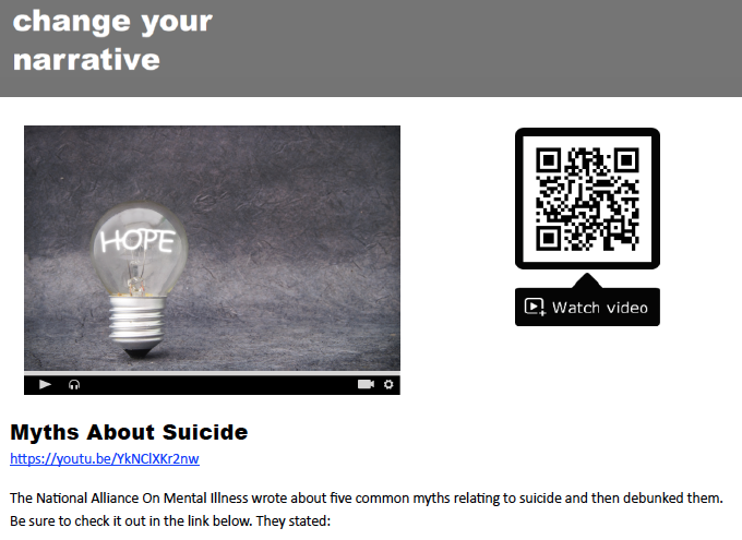 Downloadable PDF which discusses common myths about suicidal ideation and what you can do to find help if you or someone you care for struggle